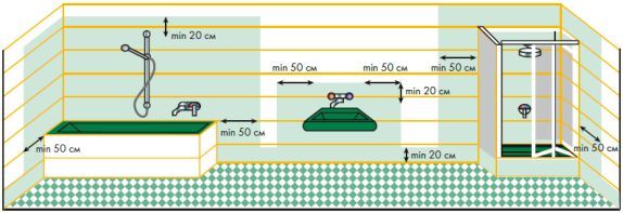Во всех влажных помещениях, будь то ванна, душевая, кухня или комната для стирки, в обязательном порядке необходимо делать гидроизоляцию. Обязательно гидроизоляцию нужно сделать в зонах, которые чаще всего бываю влажными. Необходимо покрыть гидроизоляционными смесями нижнею часть от пола (примерно 20 см в высоту). В душевой кабине необходимо нанести гидроизоляцию на всю поверхность стен и еще примерно на 50 см за их пределы. Также стоит обработать гидроизоляционными смесями стены возле умывальника и раковин в высоту как минимум 20 см от смесителя и не менее, чем на 50 см в стороны от краев умывальника или ванны.