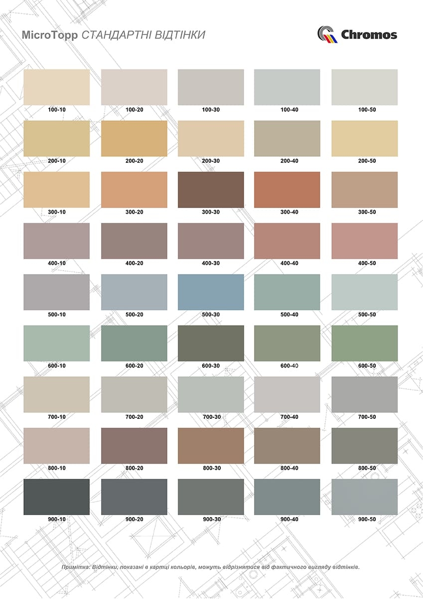 MicroTopp FC – Двухкомпонентная декоративная полимерцементная масса, предназначенная для внутренних и наружных работ. Полимеризуясь обеспечивает покрытие с высокой механической прочностью и отличной адгезией ко всем видам оснований, таким как бетон, газобетон, гипсо-известковые, известково-цементные и цементные штукатурки, керамика, плиты МДФ и т.д.