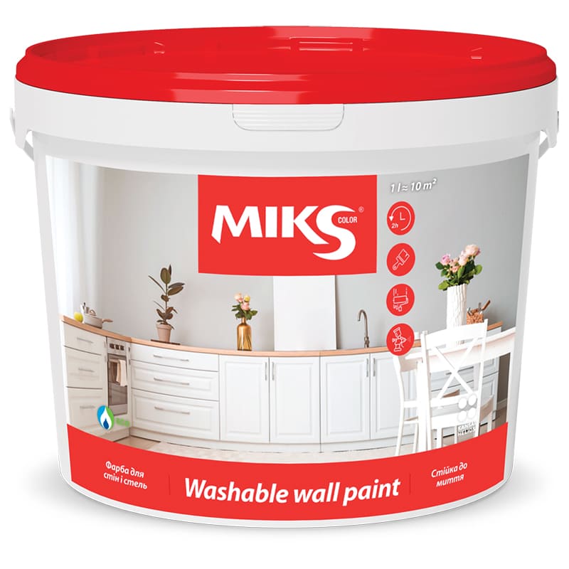 Акриловая краска для стен и потолков, стойкая к мойке, для декоративно-защитной отделки поверхностей внутри помещения.