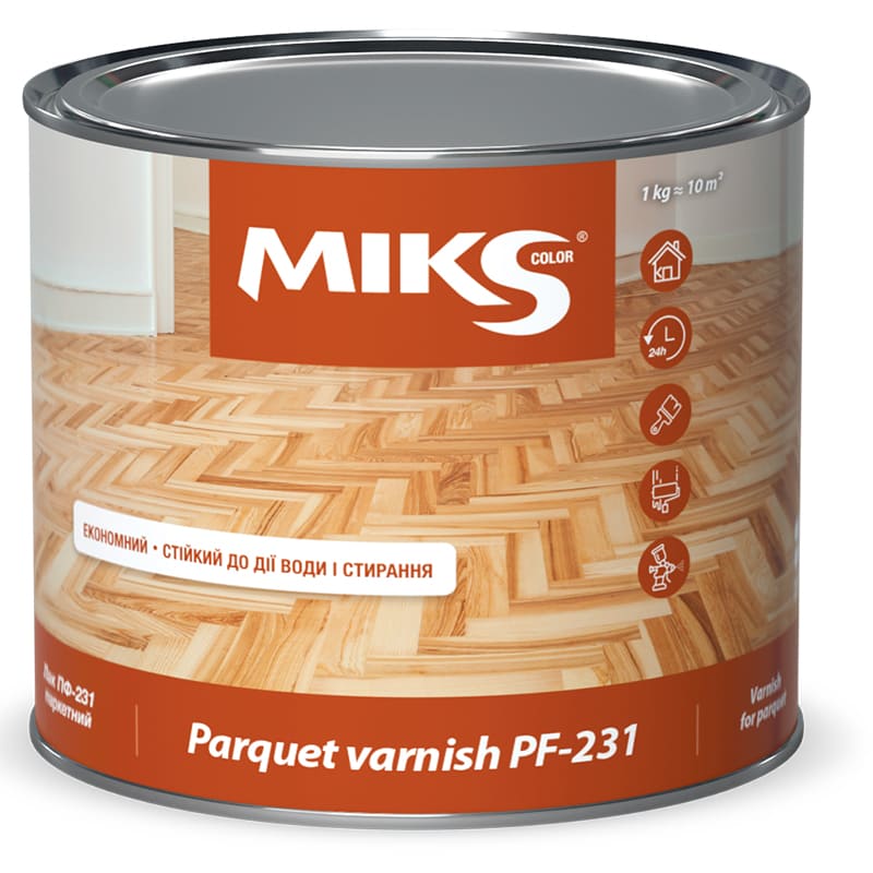Алкидный лак ПФ – 231 паркетный для покрытия деревянных и паркетных полов, а также других деревянных поверхностей внутри помещений.