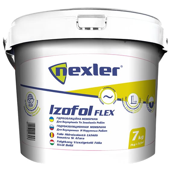Готовая к применению, обладает тиксотропными свойствами. После высыхания масса Izofol Flex на поверхности образует очень высокоэластичный, морозостойкий, непроницаемый, водостойкий слой, хорошо прилегает к основе. никаких органических веществ. Полимерная мембрана не работает на постоянный контакт с водой, поэтому данное покрытие обязательно необходимо закрыть защитным слоем (плитка, мозаика или любое другое отделочное покрытие).